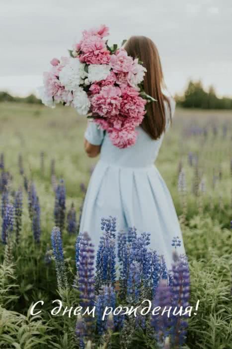 Открытка, насыщенная цветами и тёплыми словами к дню рождения девушки
