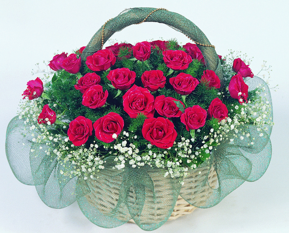Легкая и воздушная корзина с красивыми цветами для поздравления с днем рождения.