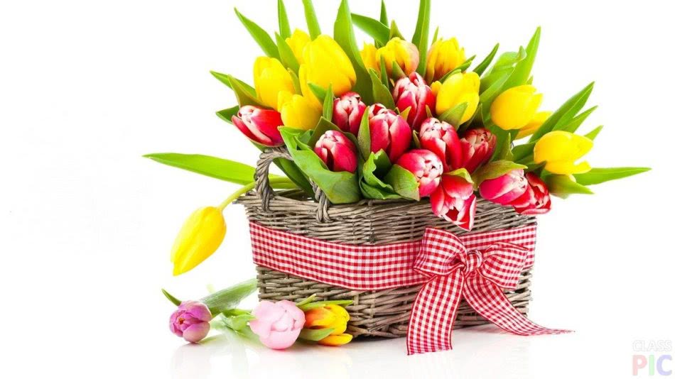 Тюльпаны тоже очень мило выглядят в плетенной корзине.