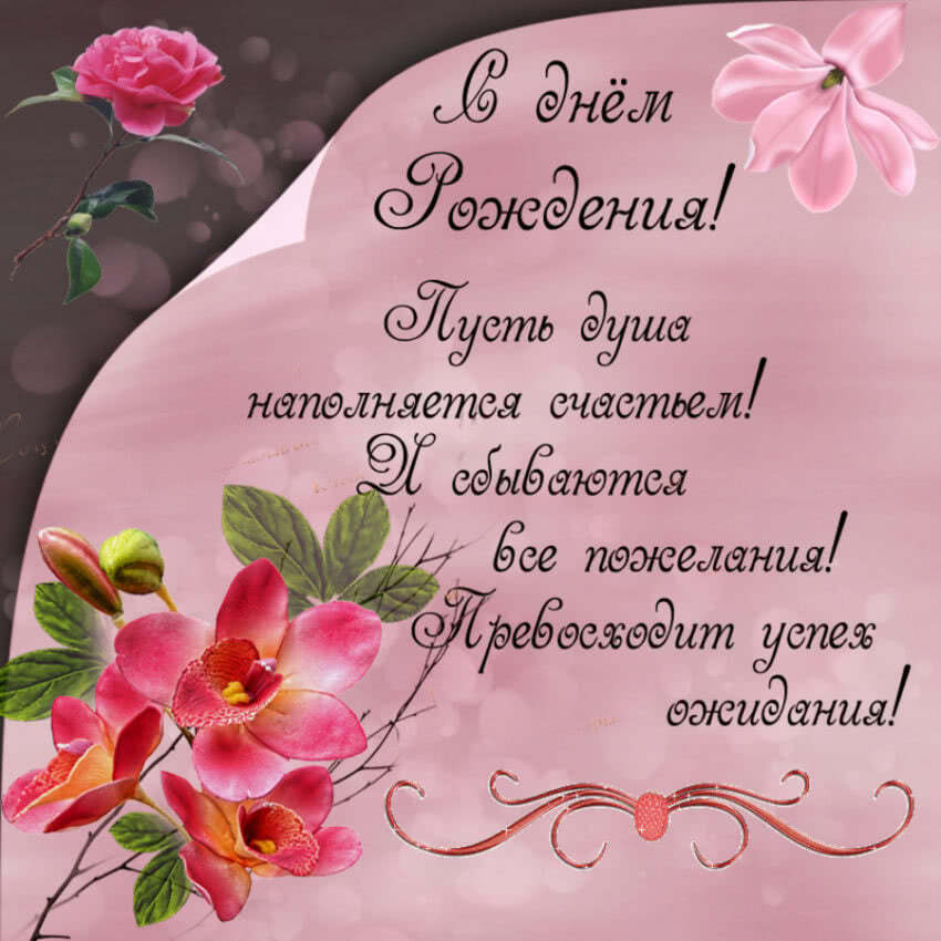 Открытка, насыщенная цветами и тёплыми словами к дню рождения девушки