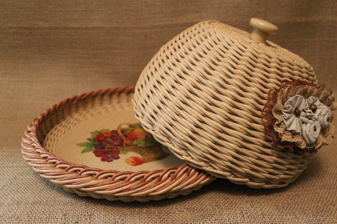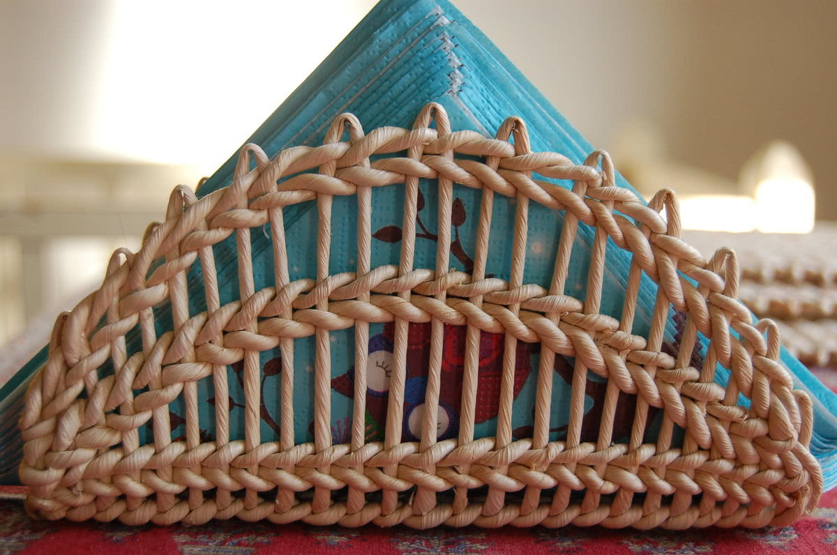 Изготовить её своими руками так же просто, как и декоративное блюдце или крышку. Для этой цели рекомендуется использовать плотные трубочки, сделанные из журнальных листов или качественной офисной бумаги. В этом случае конструкция прослужит достаточно долго. Способ плетения в процессе изготовления подставки можно выбирать любой.