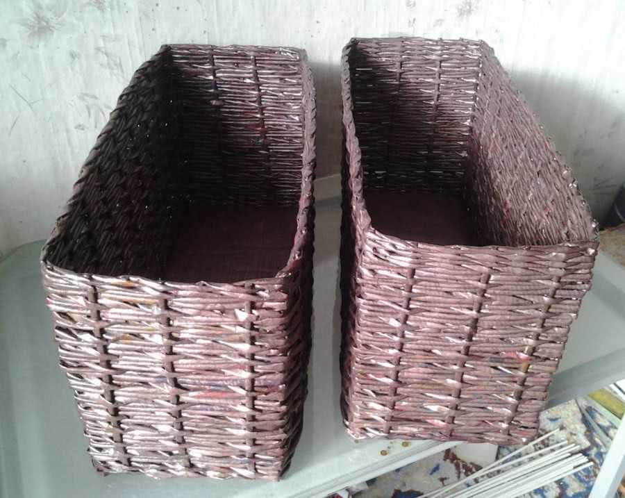 Подобные изделия трудно сделать из лозы. Бумага – мягкий материал, поэтому можно экспериментировать с разными формами. Чтобы обеспечить необходимую прочность, ее укрепляют каркасом, прочной внутренней вставкой, грунтовкой и лаковыми покрытиями.