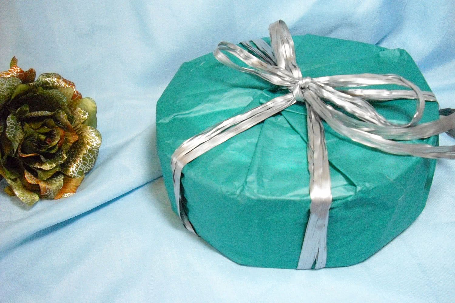 Упаковка подарков, имеющих круглую форму, сложнее и займет немного больше времени, но результат вас непременно порадует. Для этого нужны обертка, клей и скотч.