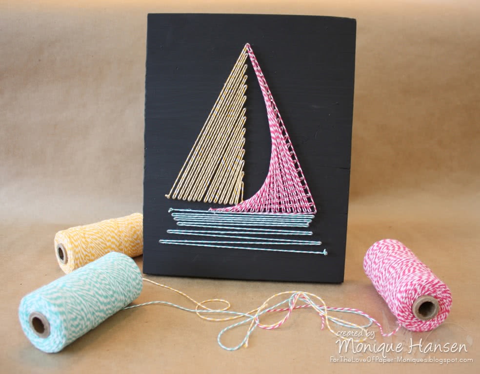 Удалите бумажное лекало. Теперь настал самый творческий этап работы — обматывание гвоздей нитями.