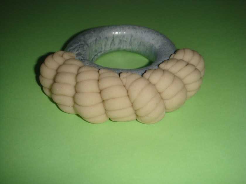 - В качестве стек используйте пилочки для маникюра, ножницы (ими можно делать острые иголочки у ежика), вилку или чайную ложку. Интересного узора на поверхности позволит добиться припечатанная поверх ажурная ткань или кружево.