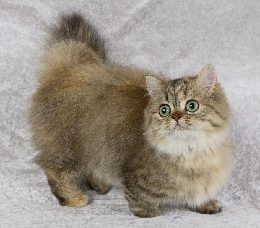 Минскин – кошки-«хоббиты». Карликовая порода с короткими лапками и нежной шерстью с рексоидным мехом.