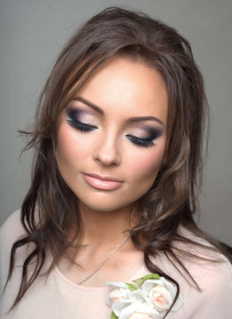 Тени при трапециевидной форме лица также стоит применять двух оттенков. Темные располагать во внешних уголках глаз, светлые — на внутренних. Румяна наносят на зону под скулами, растушевывая по направлению к вискам. Брови нужно смоделировать достаточной ширины, длинные и с изгибом. Расстояние между ними должно быть как можно большим.