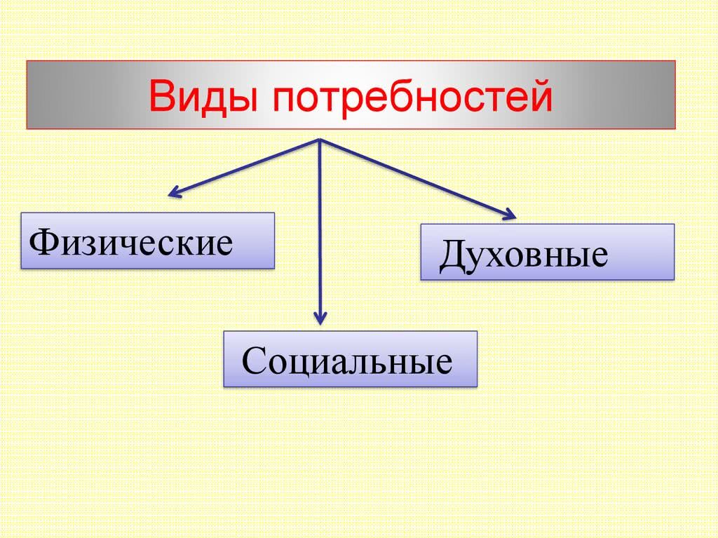 Все существующие потребности индивида можно разделить на три группы. Эта научная классификация предполагает наличие именно трёх основных видов нужд, которые можно рассматривать отдельно по определённому принципу.