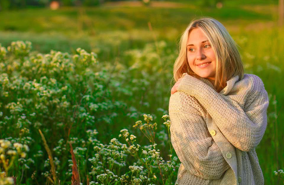 Если на поле невысокая трава или другие растения, самым удачным ракурсом будет съемка с положением модели стоя, сидя. Фотографу лучше держать объектив на уровне лица модели.