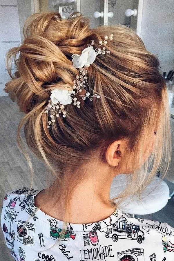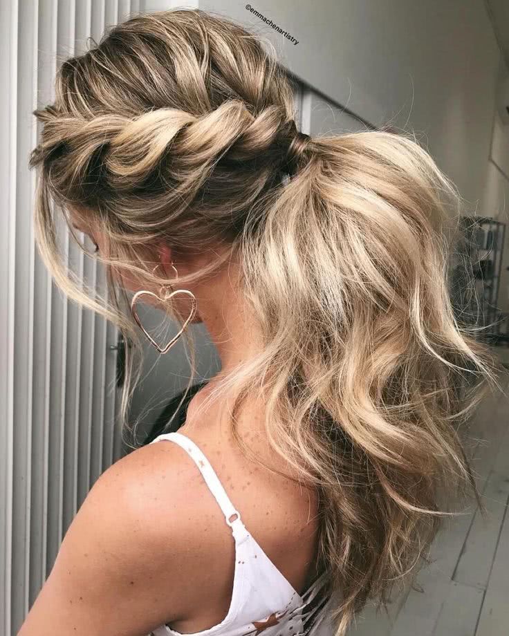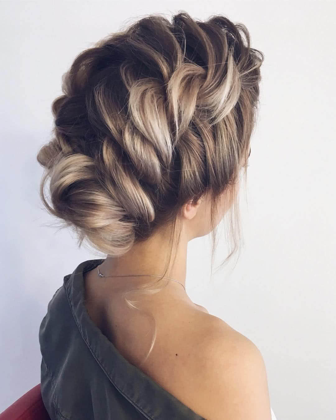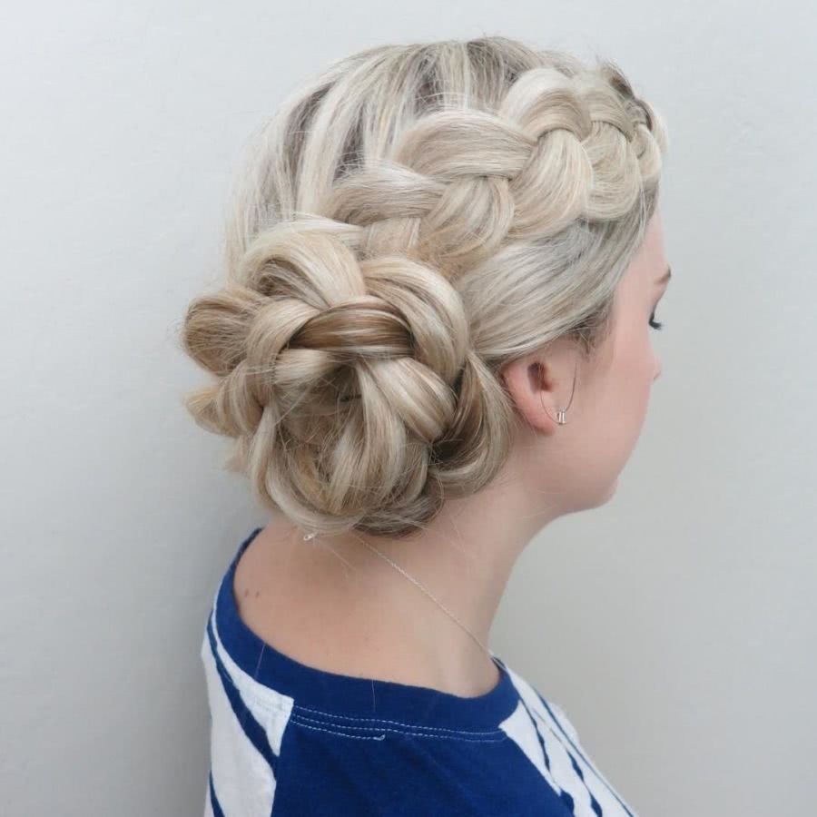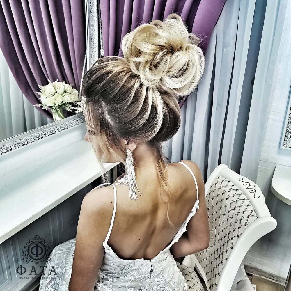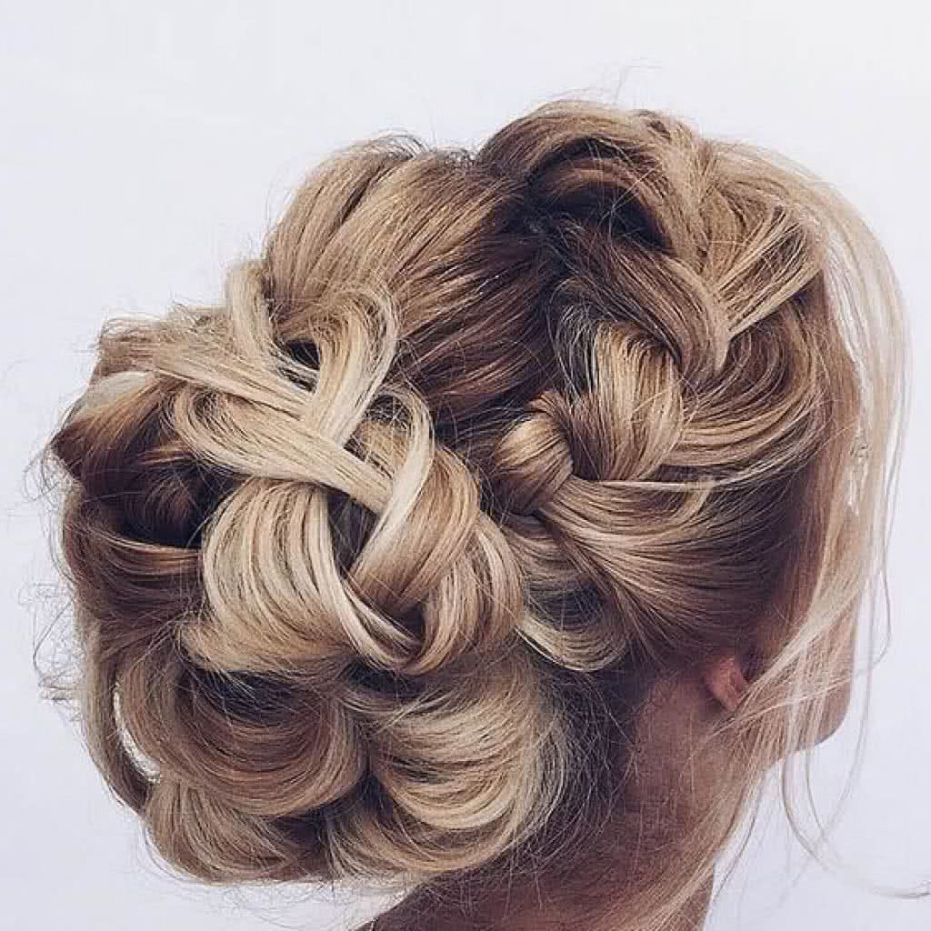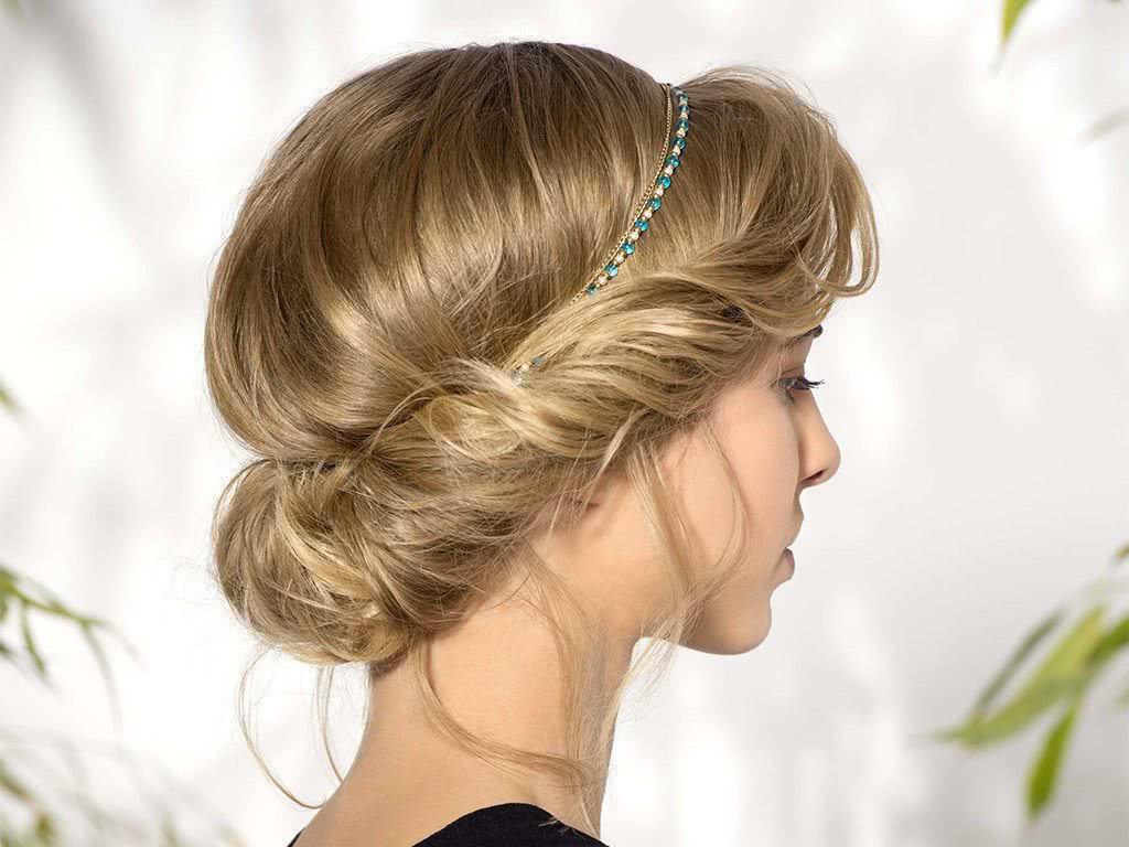 Лучшая позиция у девушек с волосами средней длины, поскольку вариантов причесок для них множество. Особенно эффектно смотрятся высокие пучки, ажурные косы.