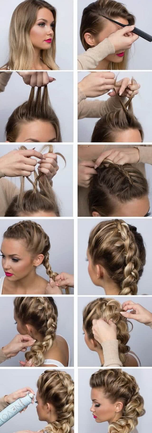 Пошаговая схема прически представлена на фото: