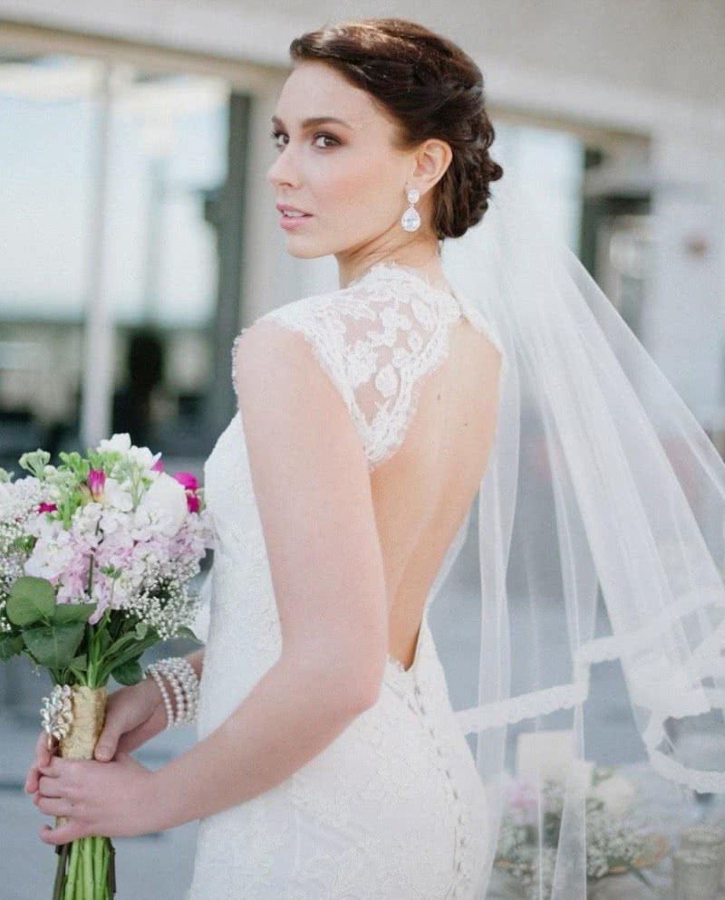 Традиционный элемент наряда привносит нежности в невинный образ. Гармоничное сочетание фаты с причёской добавляет романтичности.