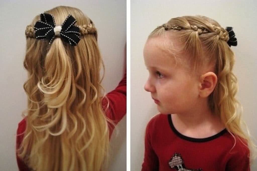 Для маленьких девочек, имеющих среднюю длину шевелюры эта детская укладка отлично подойдет для каждого дня.