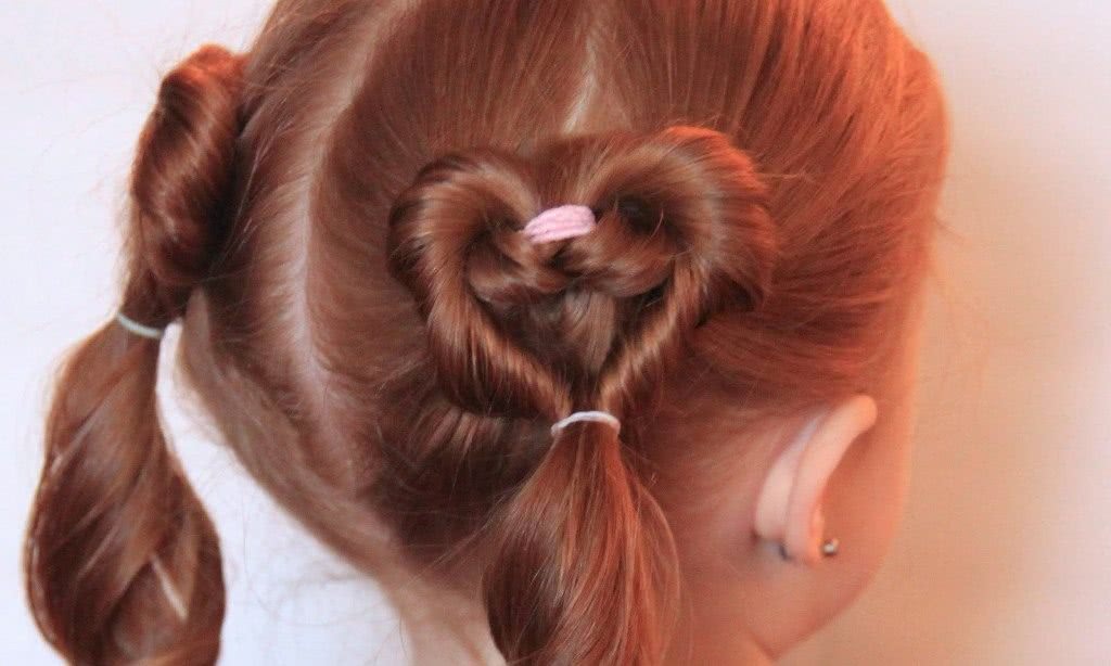 Обычные хвостики становятся основой для создания оригинальной прически со жгутами. Достаточно сделать 4 хвоста, завернуть волосы и сделать фигуры в виде сердца.