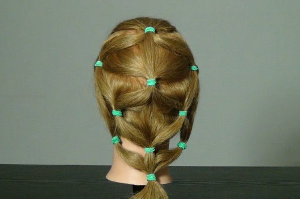 Волосы собираются в хвост, сделать его можно в любом месте головы по желанию. Затем отмериваются равные по размеру расстояния на хвосте и закрепляются резинками. В зависимости от длины шевелюры число пузырьков будет отличаться.