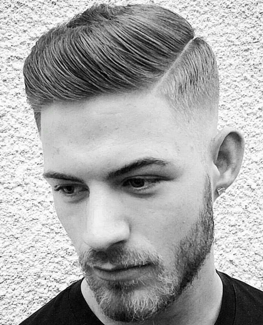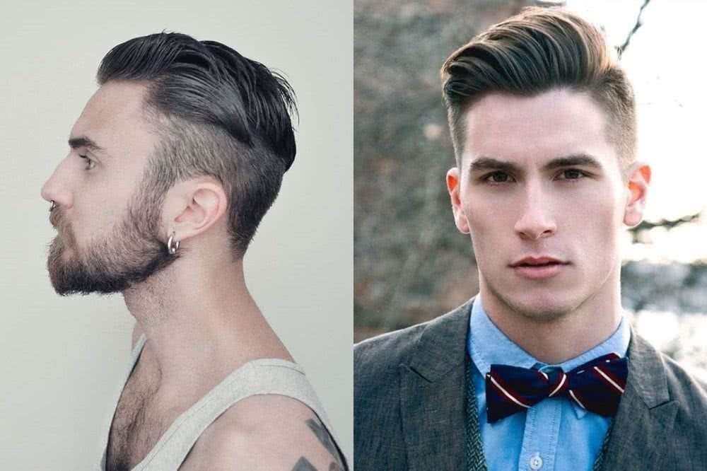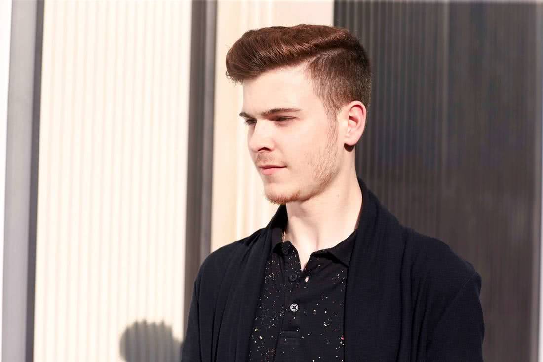 Коротко бритые виски, выраженный переход и свободно лежащие прядки на макушке сочетают безупречный комфорт типичных коротких волос и элегантность креативных молодежных стрижек для парней. Имея прическу такого рода, ты в любой момент можешь полностью измениться, уложив волосы назад, как голливудский гангстер, наставив челку в стиле помпадур или сделав замысловатую асимметричную укладку с косым пробором. При этом в повседневном образе будет доминировать практичность и комфорт.