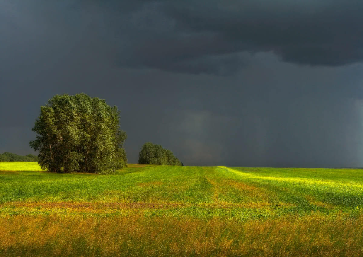 Невероятно красивый пейзаж. Лето, ливень где-то вдалеке