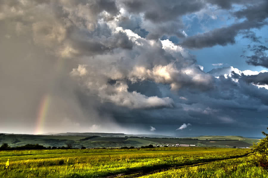 Дождевые облака, молния, радуга. Все атрибуты лета на одной картинке