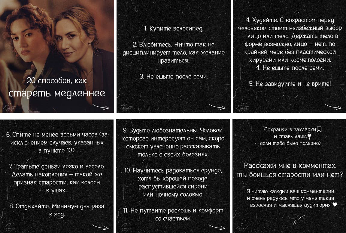 Исходя из наблюдений писала выводы. Помним, что на лайки влияет визуальное оформление и интерес, на сохранения — польза, на комментарии — обсуждаемость темы.