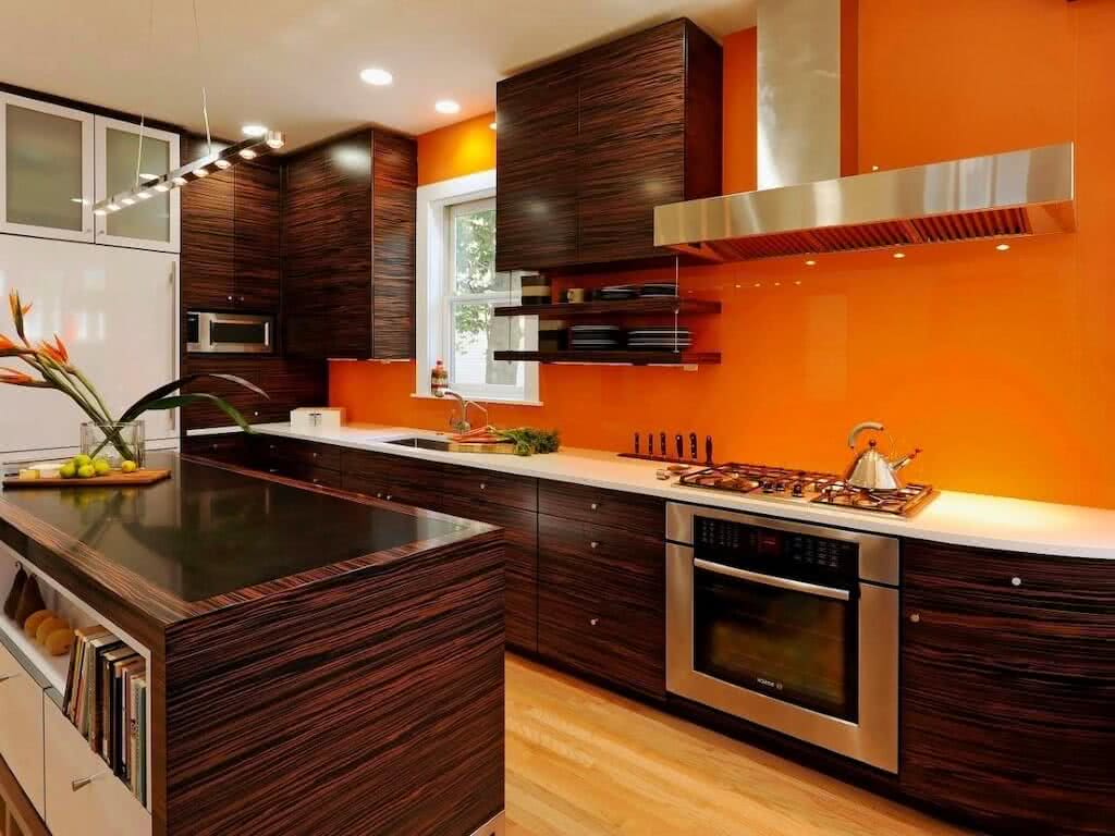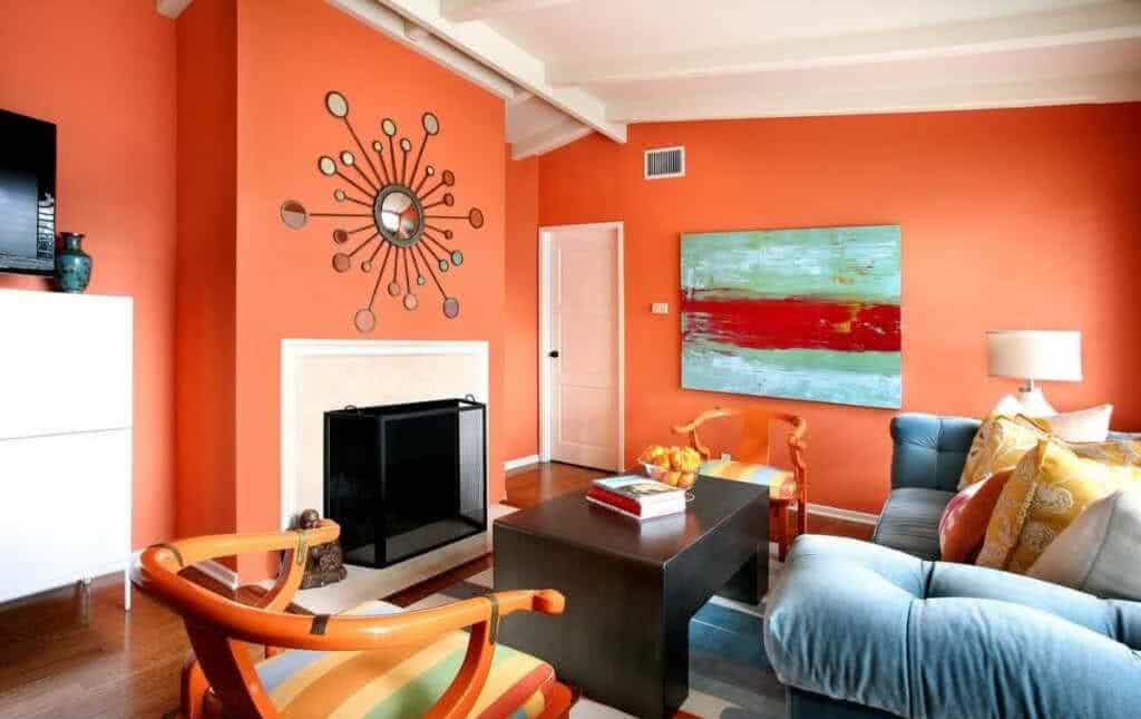 Апельсиновый цвет ликвидирует скучную обстановку, привнося в помещение индивидуальности и оригинальности