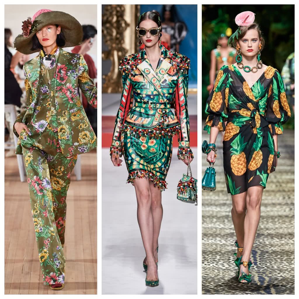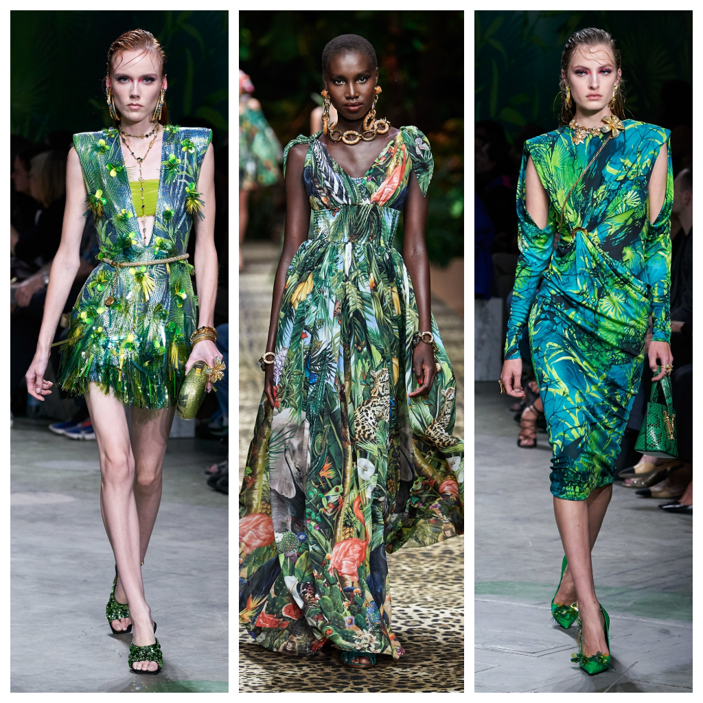 Тропический принт — самый модный принт весны-лета 2020. Наряды с ярким зеленым узором можно встретить в коллекциях Versace, Dolce & Gabbana, Marc Jacobs и других дизайнеров.