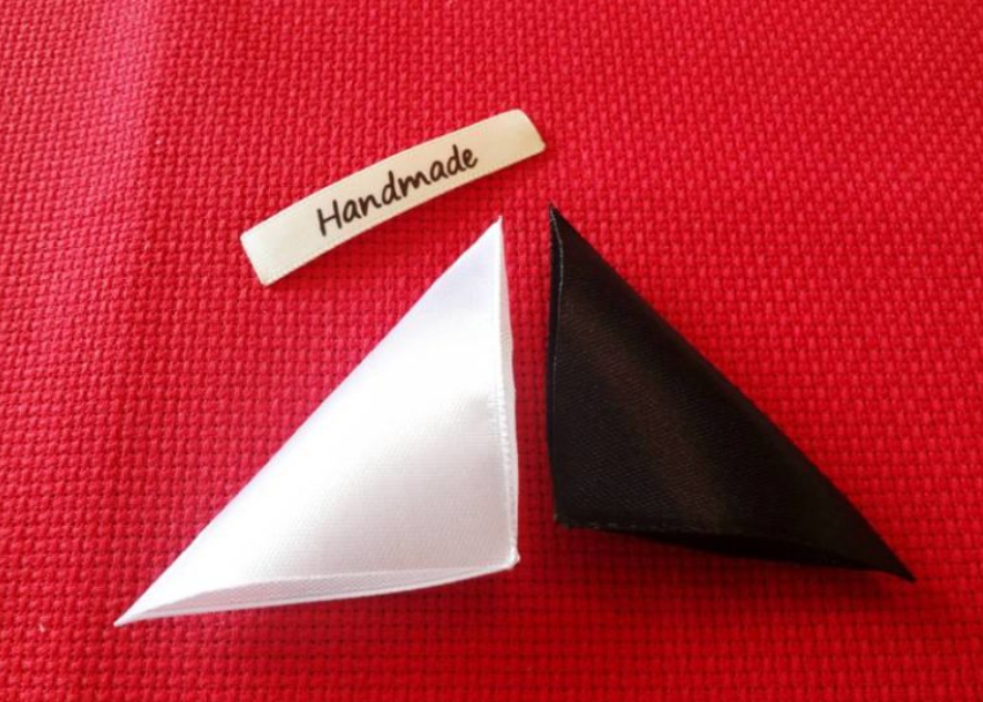 - Каждый кусочек нужно аккуратно сложить вдоль, изнанкой внутрь, по центру.