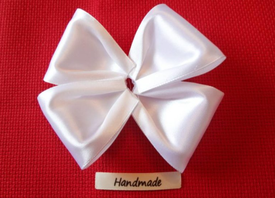 Базовый бант, который должен научиться делать любой начинающий, представлен ниже. Для него можно взять как узкую, так и очень широкую ленту – получится из любой.