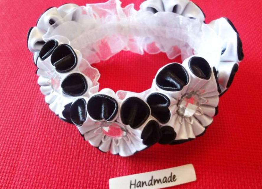 Если предполагается, что пышный бант канзаши будет одет на 1 сентября, то логично сделать его из белой узкой ленты, а чтобы он смотрелся ещё наряднее, купите ленту с серебристой или золотистой окантовкой по краям. По этому варианту банта я не снимала отдельное видео, так как в нём нет необходимости, одуванчик из узкой ленты мы делали по этой же технологии, будет одно лишь отличие, о котором я расскажу по ходу. Я даже использую для показа некоторые фото из той статьи про одуванчики из лент.