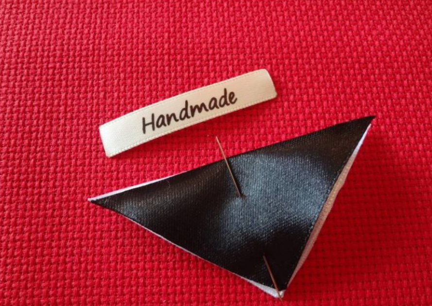 - Тканевый элемент раскрываем. Верхушка должна получиться строго по центру.