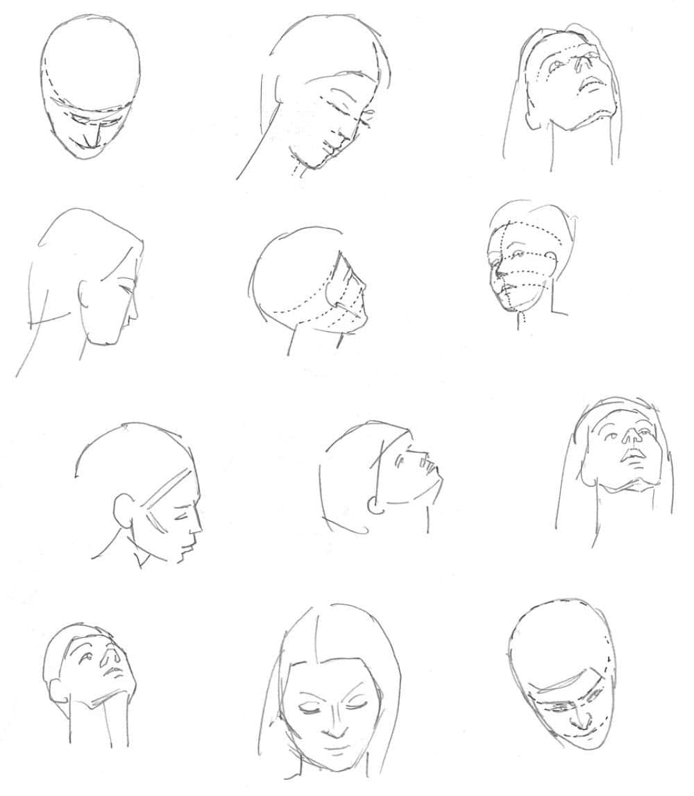Все эти рисунки сделаны как комбинация блоков, подчеркивая трехмерность головы, что позволяет получить представление о форме головы в целом, а не только о лице. Если вы новичок, подобный метод рисования очень важен, потому что он заставляет вас научиться видеть голову в полном объеме, о чем редко задумываются те, кто не занимается рисованием.