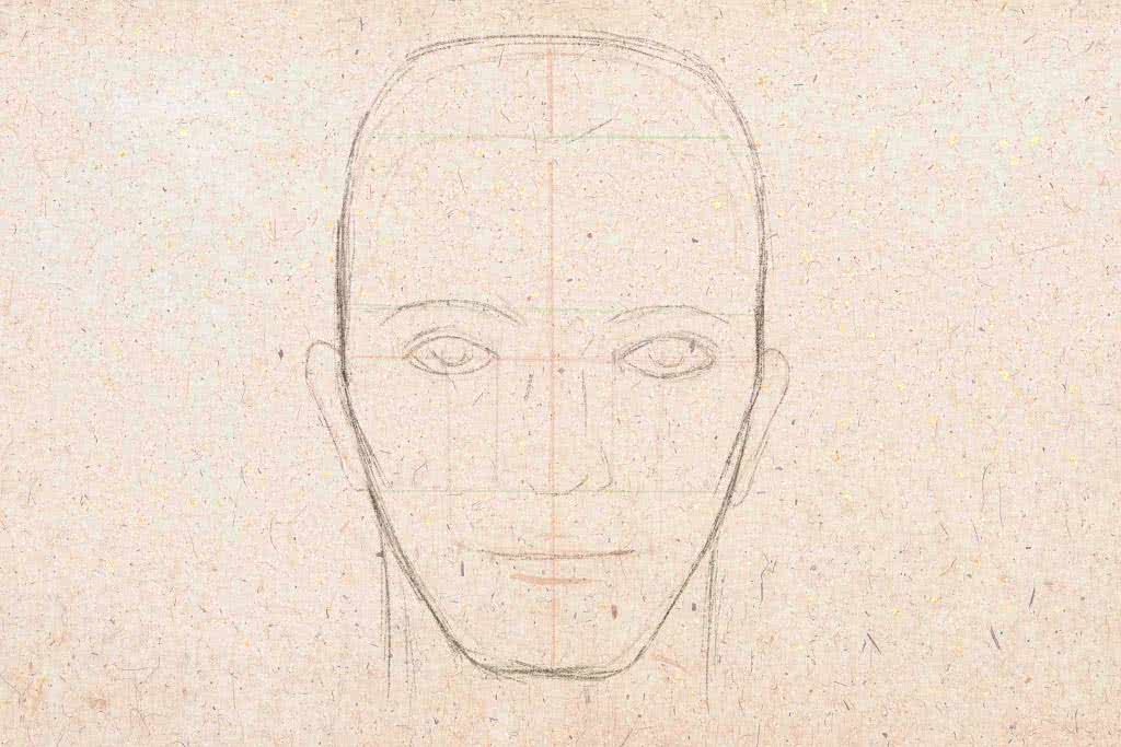 Для начала следует нарисовать каркас будущего портрета карандашом. Отобразить форму головы, примерное расстояние между подбородком и затылком, расстояние между глаз. При этом не стоит забыть и о масштабе, пропорциях и других измерениях лица. Штрихи карандаша необходимо делать тонкими и лёгкими, чтобы в любой момент можно было их подкорректировать.