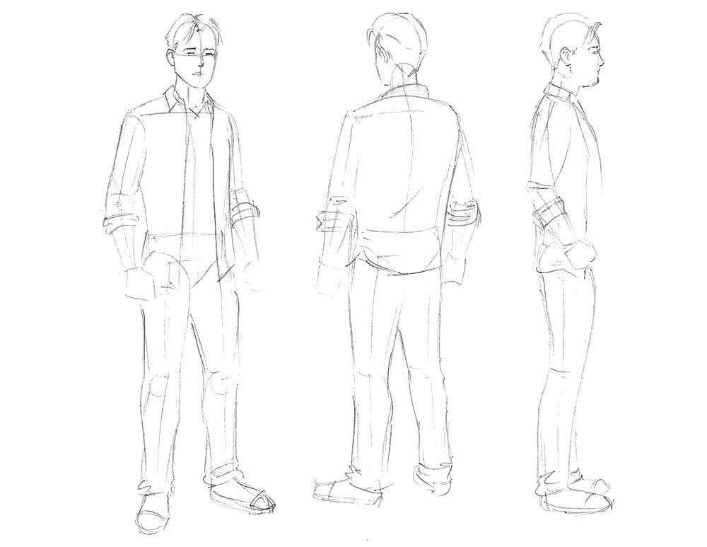 Нужно четко представлять, где на рисунке проходят горизонтальная и вертикальная линии. На первых этапах, если вам сложно держать их в уме, вы можете рисовать их и стирать ластиком в конце работы.