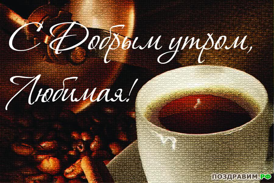 Символ утра для многих девушек — кофе. Символ любви — сердце. На представленных ниже картинках эти два символа объединились, к ним добавлено пожелание доброго утра любимой, чтобы вы могли использовать их по прямому назначению.