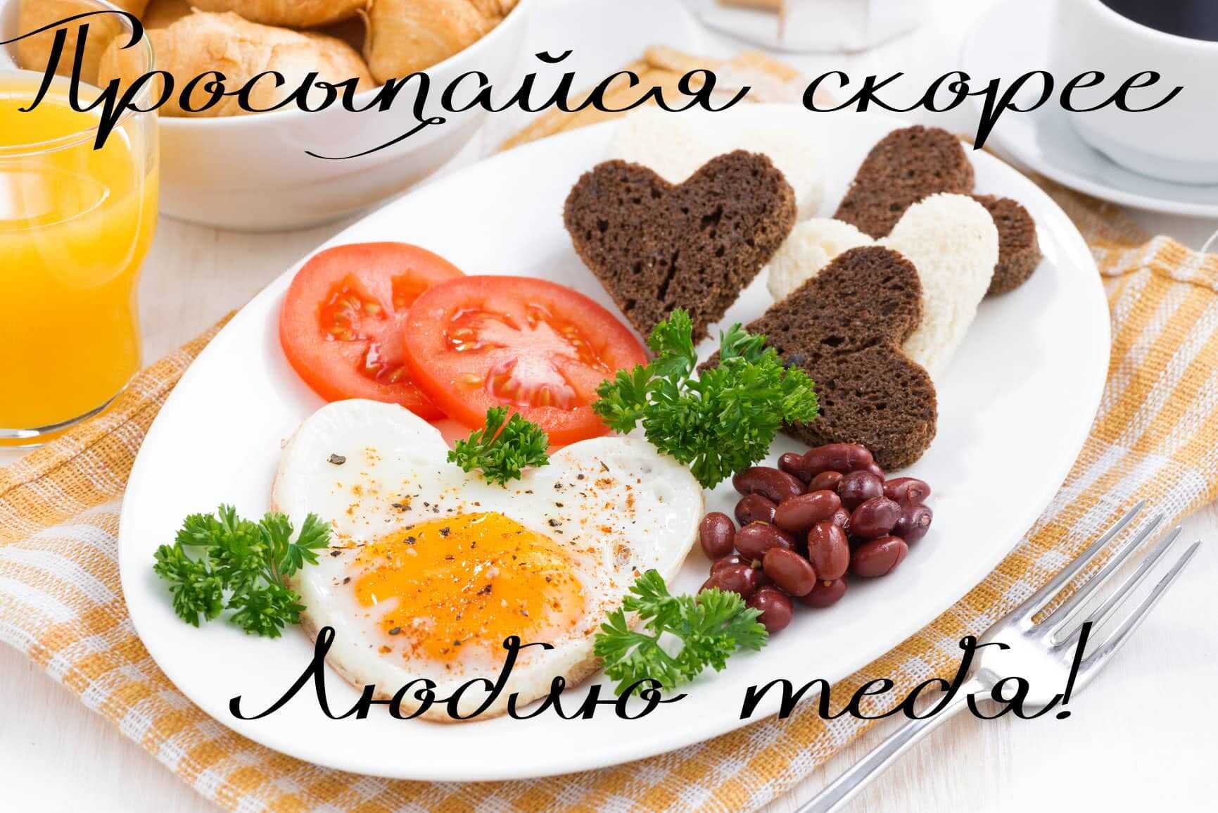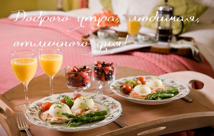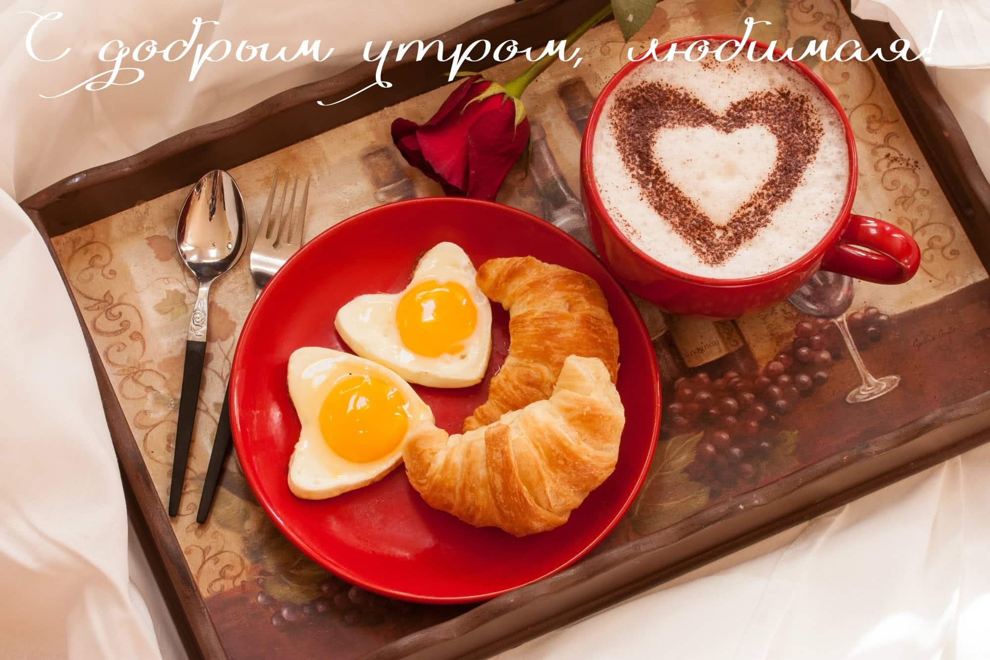 Картинки с надписью «с добрым утром» любимой с завтраком в постель