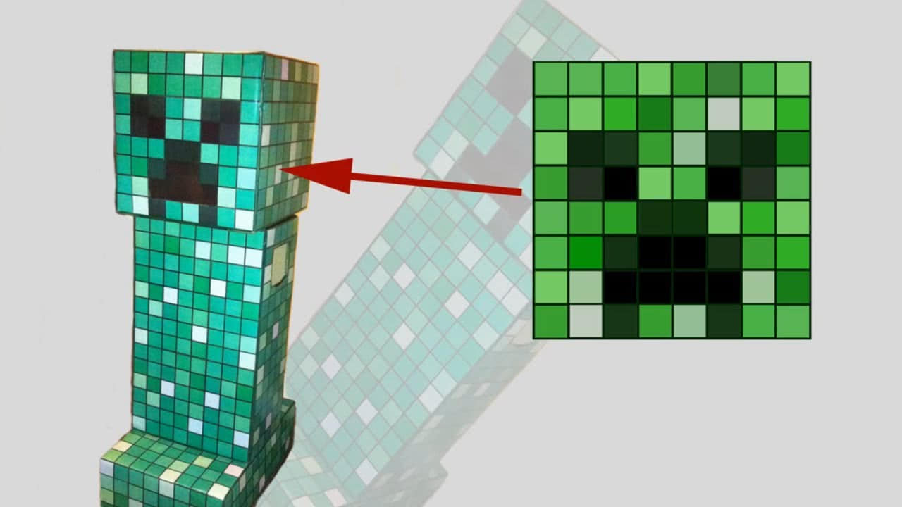Благодаря тому, что единицей измерения здесь является блок, а все существующие элементы, так или иначе, состоят из множества частиц кубической формы, для изображения большинства объектов потребуется разлинованная в клетку бумага, разноцветные фломастеры и немного усердия.