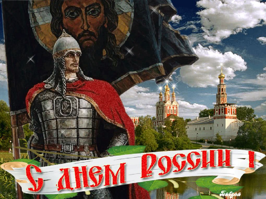 Анимированная открытка на день России с богатырём