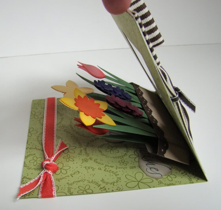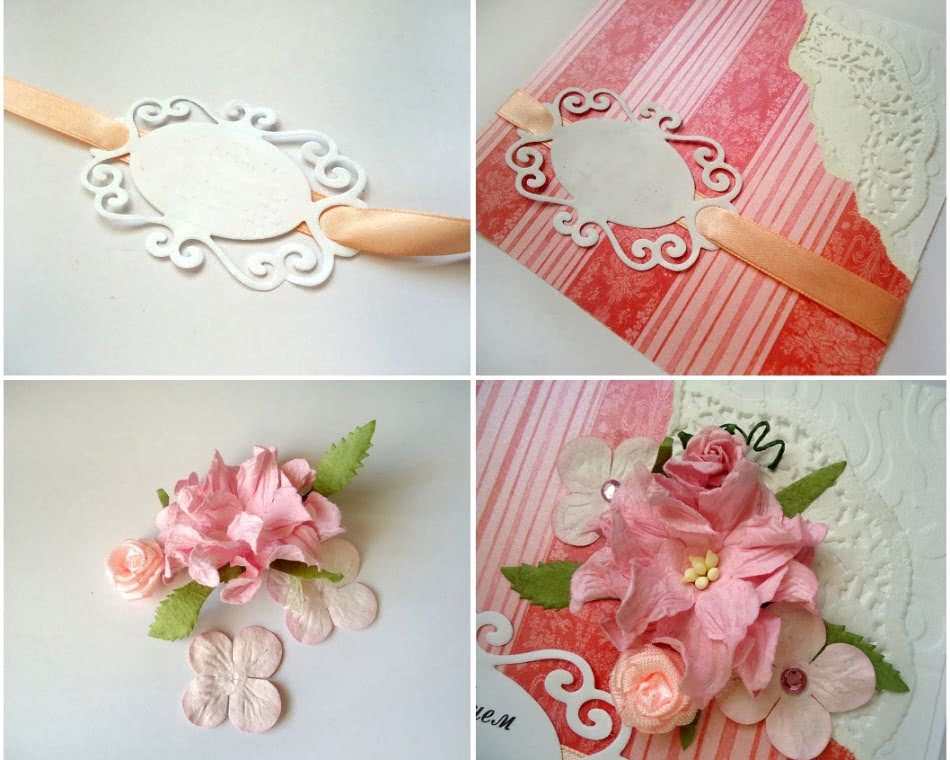 - Если хотите, чтобы открытка получилась интереснее, обвяжите ее вокруг тонкой ленточкой, а потом завяжите бантом.