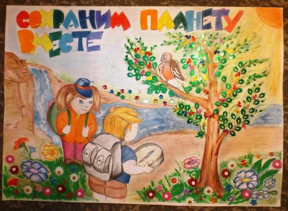 Часто дети рисуют плакаты на тему «Защитим планету». Детские рисунки очень трогательные, они как нельзя лучше доносят до людей главный смысл — берегите планету.