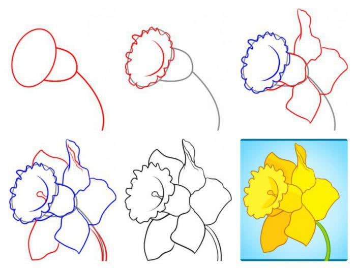 Весенние цветы поэтапно: нарцисс.