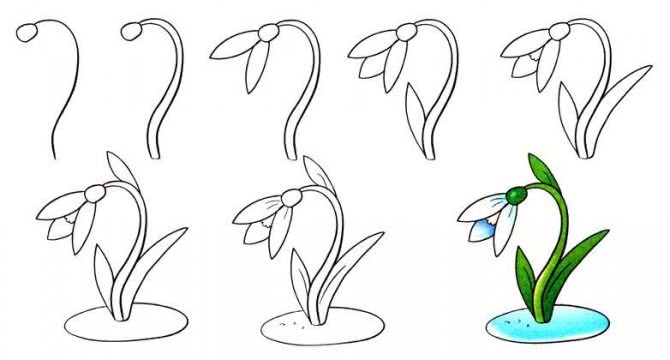 Весенние цветы поэтапно: подснежник.