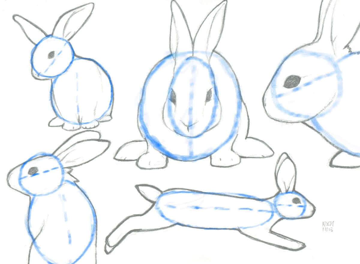 Основные формы, которые формируют фигуру зайца в разных положениях