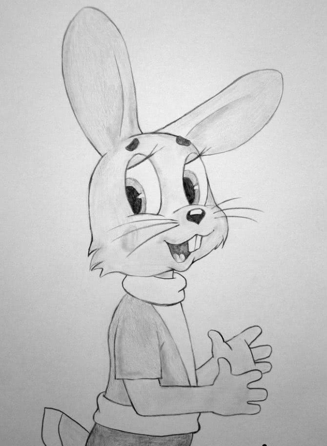 В мультфильме «Ну, погоди!» можно увидеть одного из самых известных персонажей-зайцев. Поэтому особенно интересно его рисовать, представляя себя художником-мультипликатором.