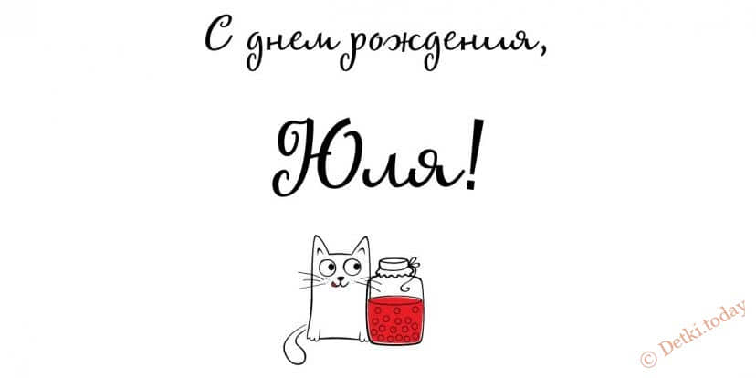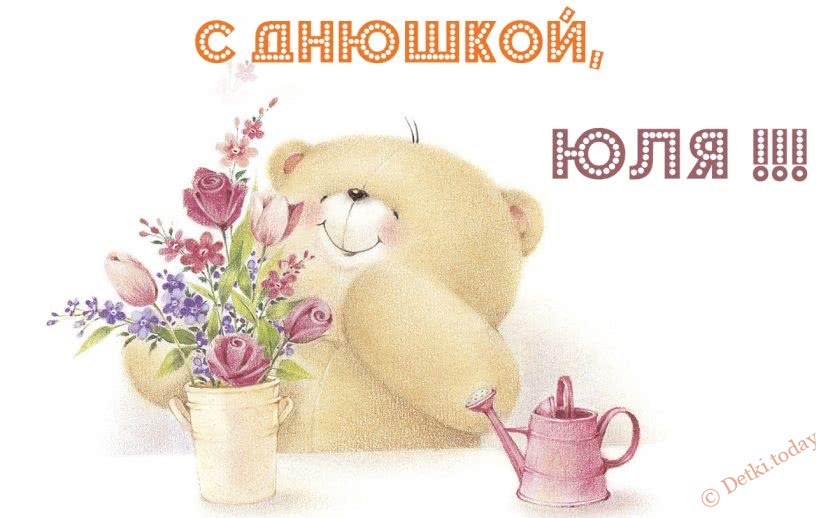 Предлагаем вам также детские веселые открытки ко Дню рождения маленькой девочки с именем Юлия. Малышке придется по душе яркое изображение плюшевого мишки, котиков, собачек и модных нынче совушек.