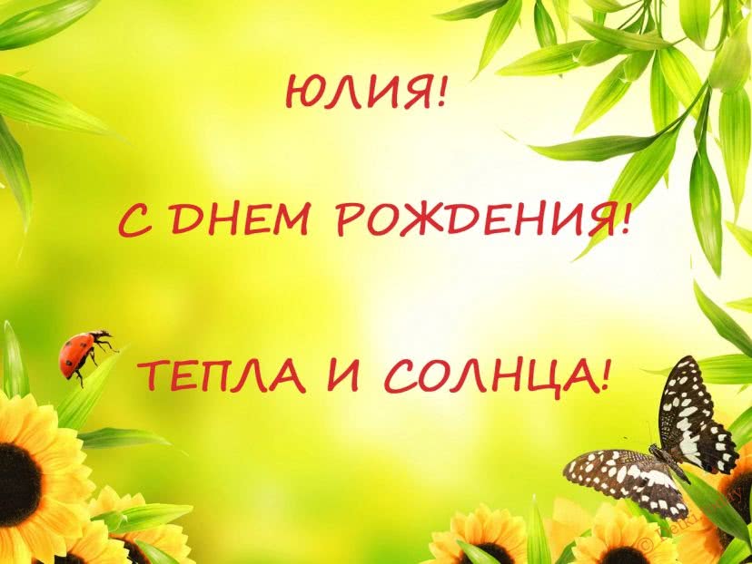 Юлию поздравить с Днем рожденья! От души сегодня мы хотим. Вам желаем вечного везения, Искренне сегодня говорим: Вы прекрасны, так пускай с годами Расцветает ваша красота И за всеми добрыми делами Пусть любовь скрывается всегда!