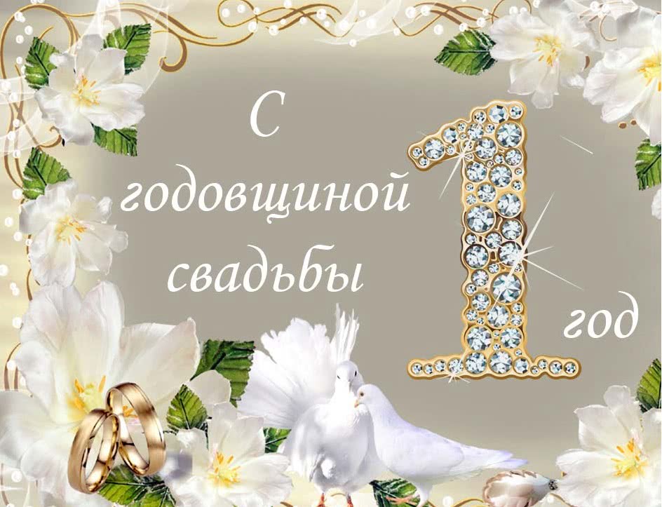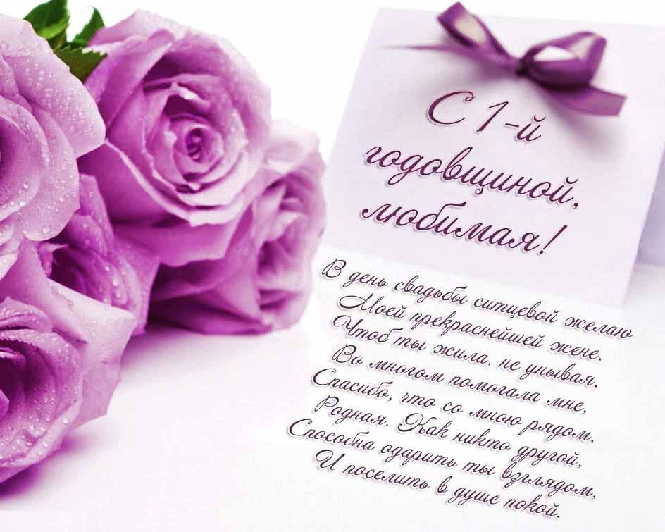 3. На первую годовщину лучше всего подобрать красивые открытки-поздравления с изображением невесты, жениха, обручальных колец, лебедей или голубков. Через год воспоминания о регистрации брака еще свежи, приятно будет вспомнить весь праздник и пожелания гостей.