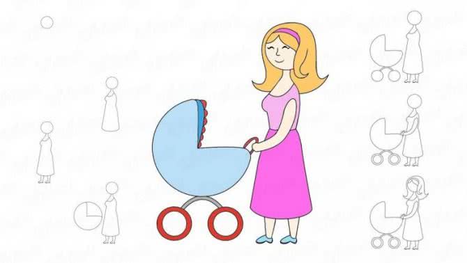 Красивый рисунок для мамы от дочки может выглядеть так, как будто ребенок помнит, как мама гуляла с ним, будучи еще младенцем.