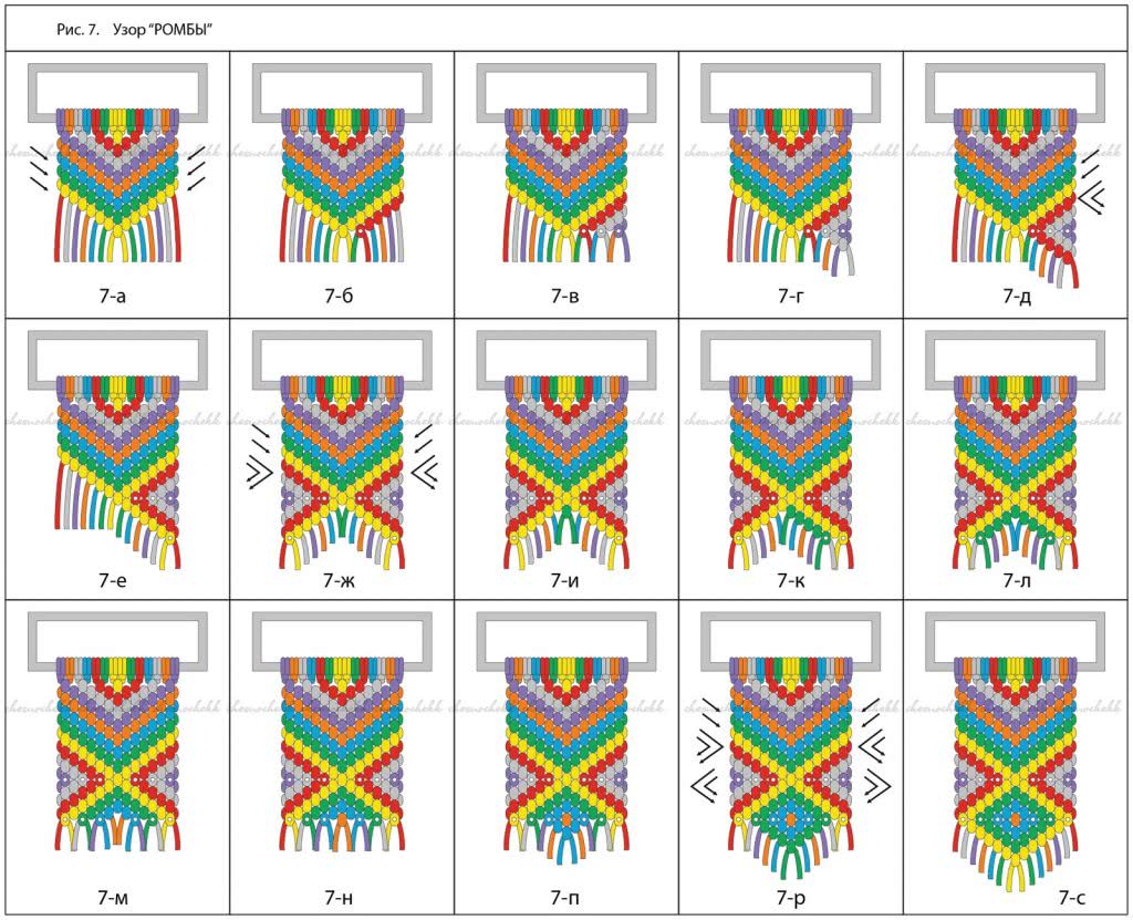 Плетение узора ромбы по схеме