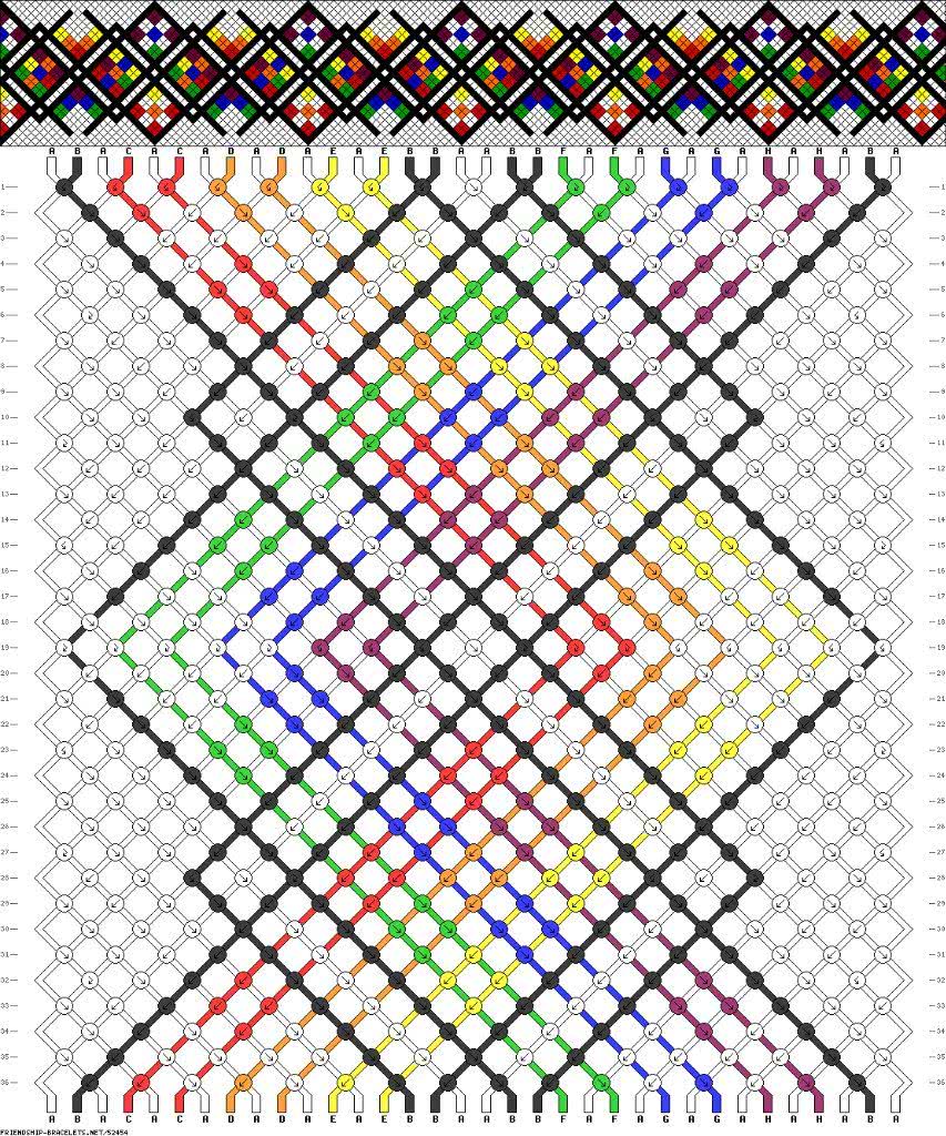 Схемы фенечек с полным циклом. Это означает, что на рисунке последовательность цветов будет одинаковой.