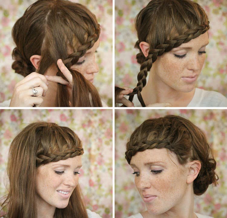 Для начала рекомендуется хорошо расчесать волосы, чтобы плетение проходило легче. Далее необходимо отделить челку. Если таковой не имеется, то прядь необходимого размера. Затем начиная от одной ушной раковины к другой плетется коса классическим способом, указанном ранее.