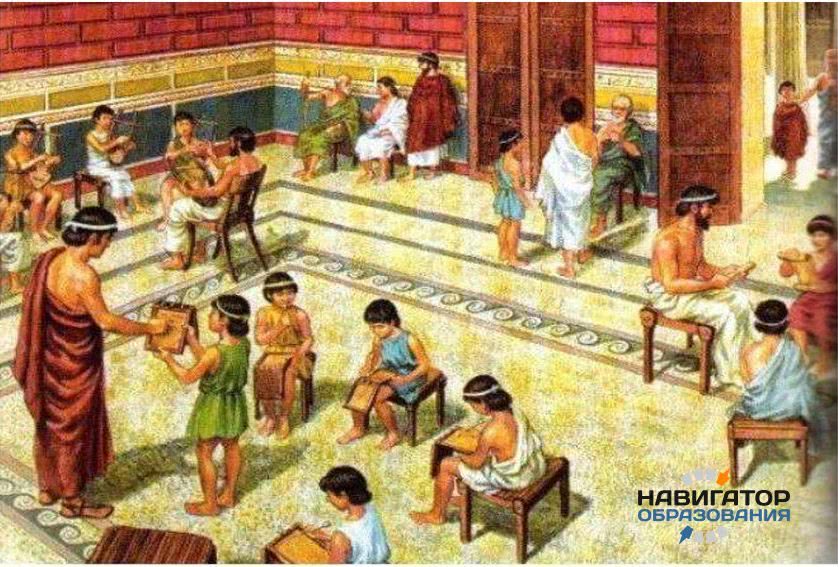 В древнегреческих школах внимание уделялось гармоничному развитию подрастающего поколения. Поэтому юных граждан не только обучали точным, естественным и гуманитарным наукам, и развивали интеллектуально и физически, но и воспитывали нравственно